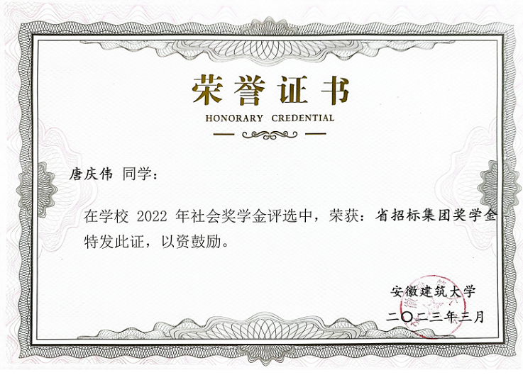 功夫不负有心人,唐庆伟的表现和成绩赢得了众多的荣誉,先后获得了安徽省优秀毕业生、安徽省优秀硕士论文、三好研究生等荣誉称号,并在毕业时以优异的成绩被合肥工业大学录取为2023级博士研究生, 未来还会在学术的道路上继续探索。