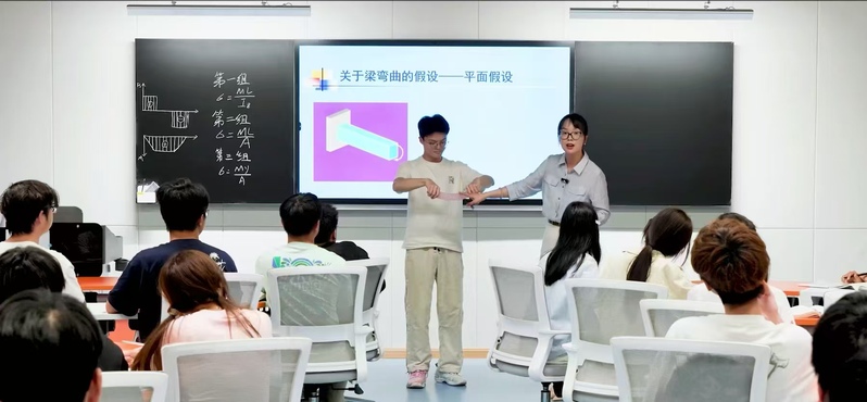 参加教学创新大赛,不仅是一次展示教学成果的机会,更是推动教学改革的重要契机。周老师将备赛过程中形成的创新理念和方法,积极应用到日常教学中,在力学课堂上开展了一系列以赛促教的实践探索,取得了显著成效。教学理念上,周老师实现了从“以教为主”到“以学为主”的转变。她更加注重学生的主体地位,将教学的重点从知识传授转向学生能力培养和素养提升。通过创设真实的问题情境,激发学生的好奇心和求知欲,引导学生主动思考、积极探索,培养学生发现问题、分析问题和解决问题的能力。教学方法上,她根据不同的教学内容和学生特点,灵活运用多种教学方法。以赛促教的实践使力学课堂焕然一新,学生学习积极性大幅提升,课堂氛围活跃。