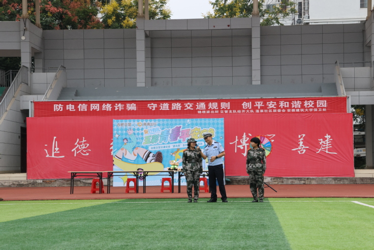 活动邀请了合肥市公安局交通警察支队经开大队聂华阳警官,合肥市公安局经开分局郑睿杰警官,合肥市公安局经开分局锦绣派出所唐卫东警官,合肥市公安局交通警察支队蜀山大队杨涛警官,合肥市公安局政治部新闻中心周力警官,民警们为刚刚踏入大学校园的建大学子送上一堂生动的“安全必修课”。